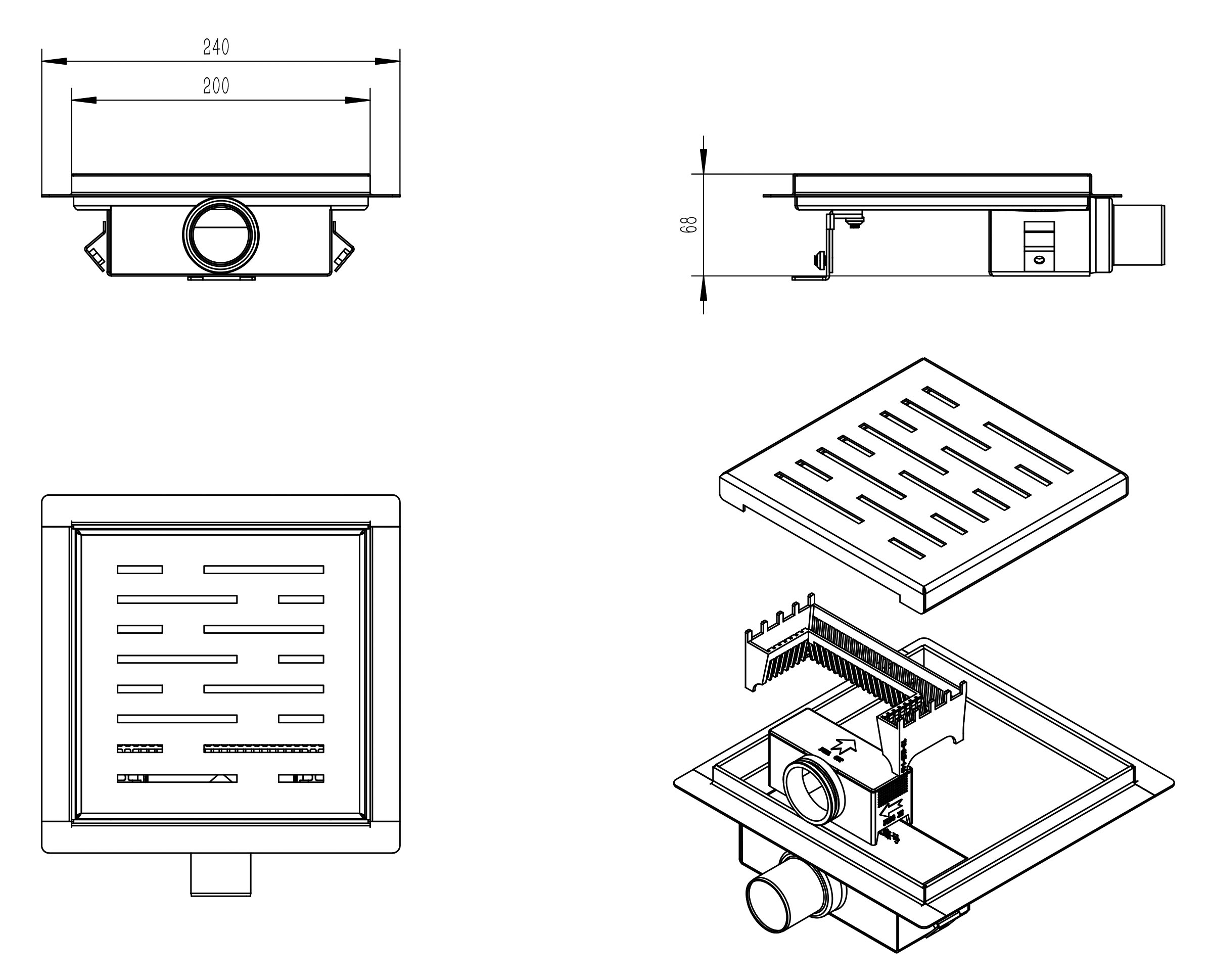 Doucheput, douchegoot RVS, douchedrain, drain, waterafvoer douche, afvoerput