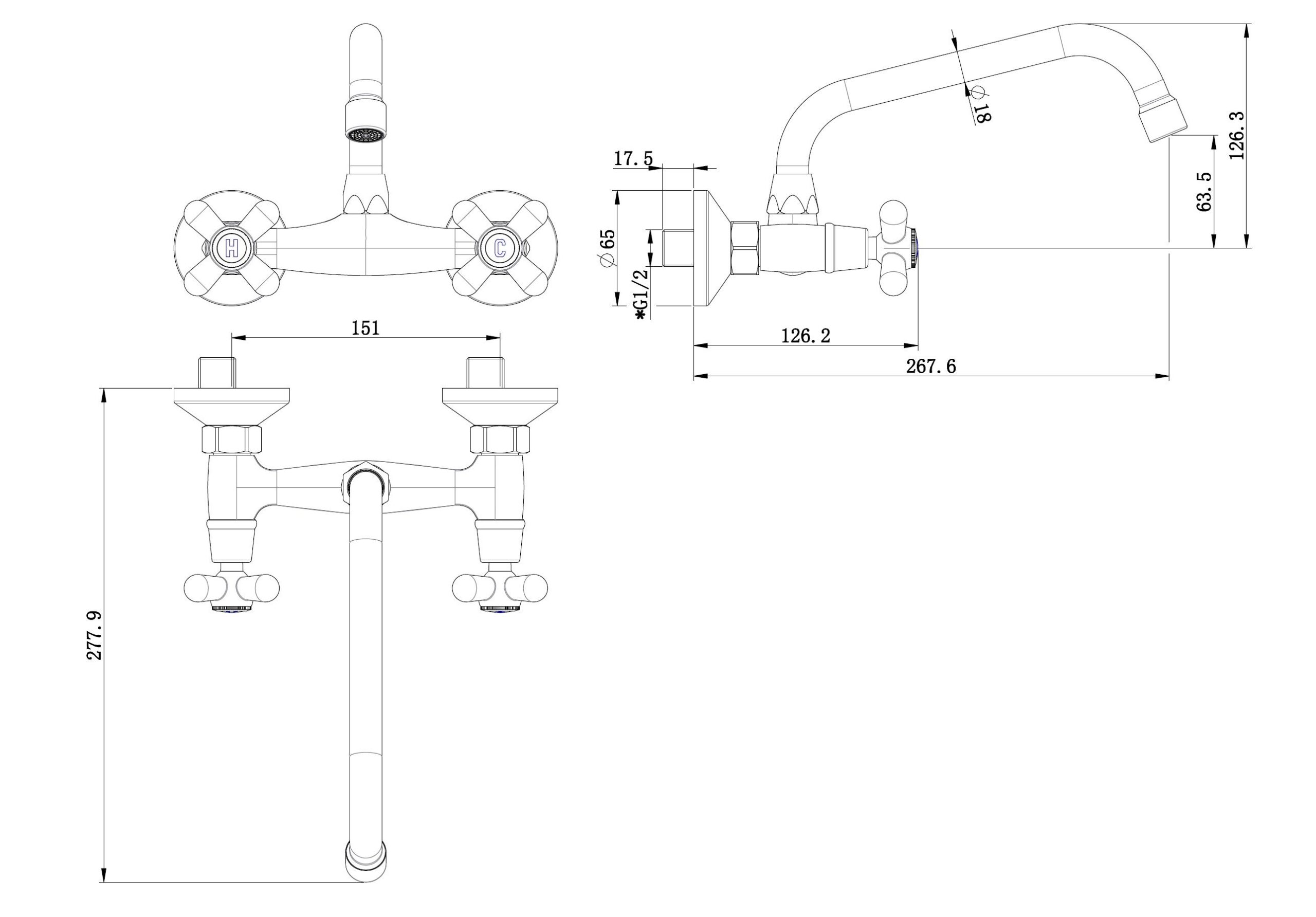 Keukenkraan, nostalgische mengkraan, wandmengkraan, muurkraan