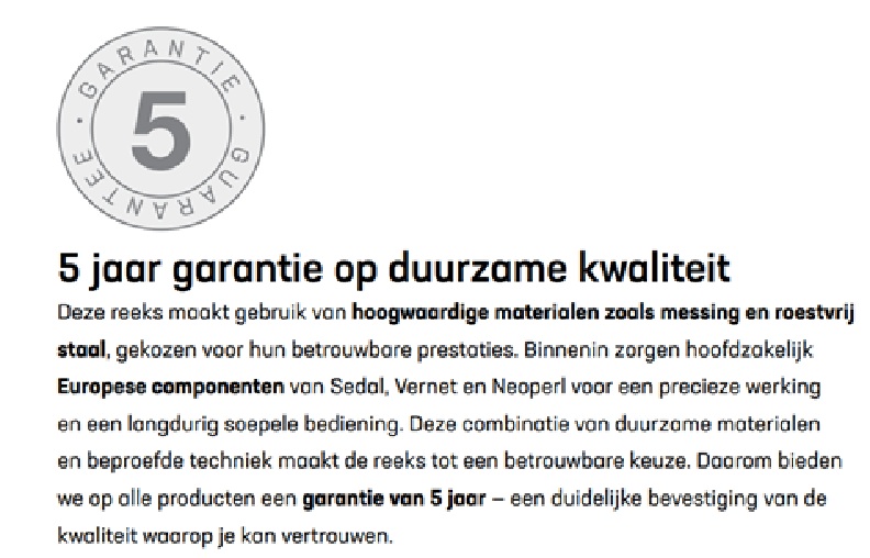 - de ingebouwde Neoperl perlator voegt lucht toe aan de watertoevoer waardoor u tot wel 20% kan besparen op water!