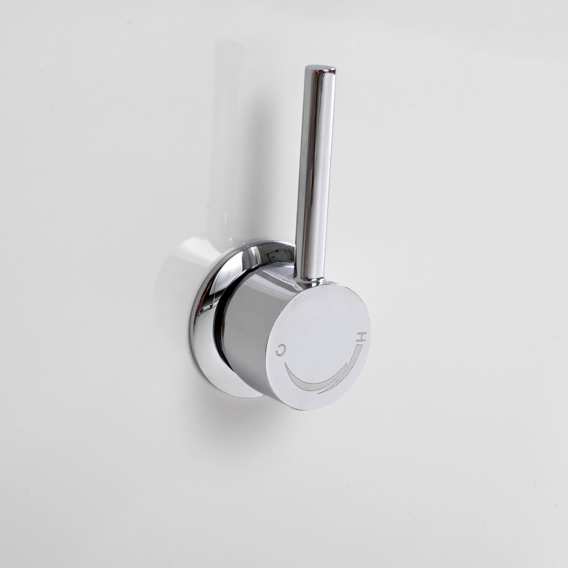 Ook het bedieningspaneel voor de spoeling zit in de achterwand weggewerkt.