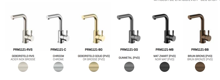De materialen waar de wastafelkranen uit zijn gefabriceerd kunnen ook verschillen. Zo zijn de meeste kranen vervaardigd uit messing ( geel koper) en daarna verchroomd. U kunt ook kiezen voor een kraan in de kleur geborsteld edelstaal of voor een echte rvs-304 kraan. Wie voor design gaat, kiest voor een kraan in kleur: zwart of wit.